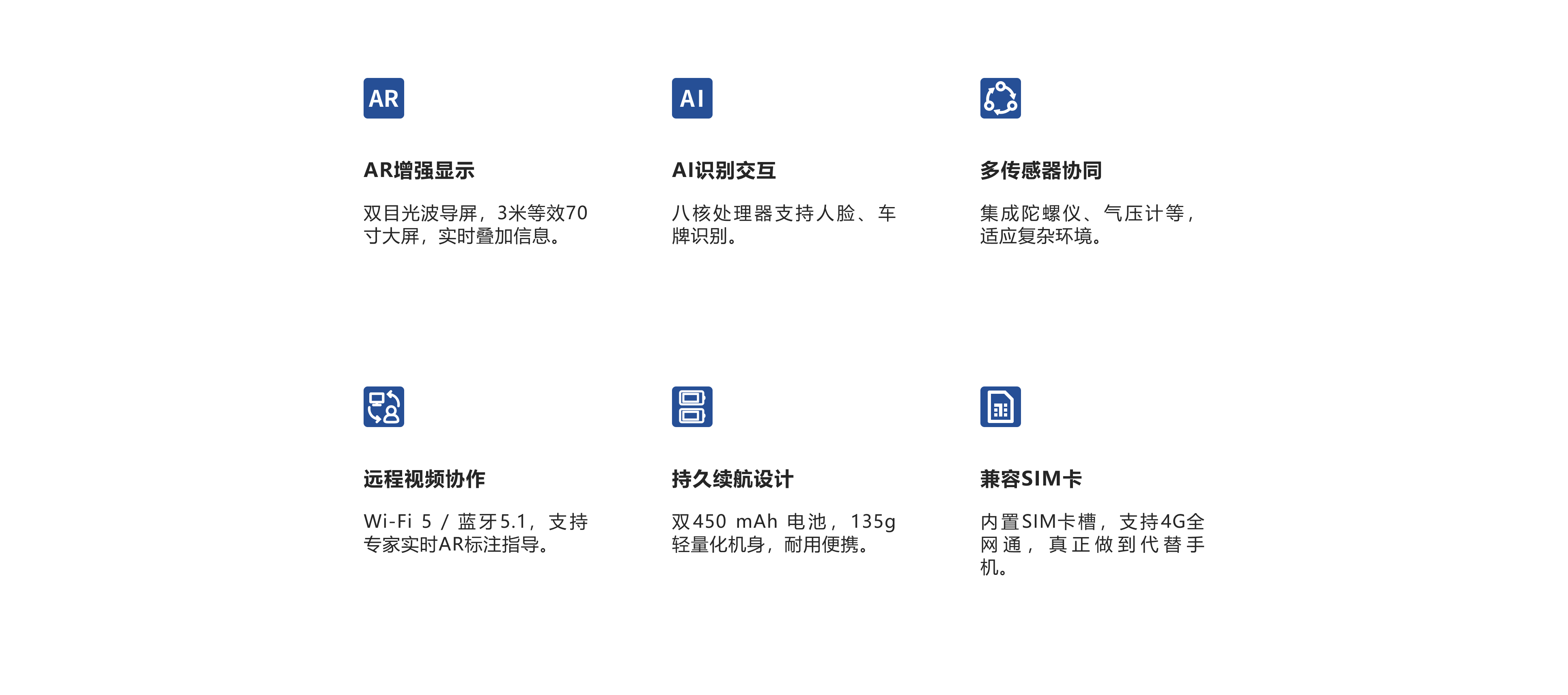 G10一体式AR眼镜是一款轻量化智能眼镜,集AR显示、AI识别与多模态交互于一体。 搭载八核处理器与双目衍射光波导屏幕,支持实时数据叠加、远程协作与多传感器融合,专为工业巡检、安防执法及户外作业等场景设计,提升工作效率与智能化水平。