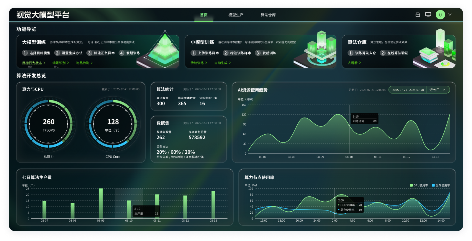 为应对不同的业务需求与数据条件,本平台提供灵活的算法训练方案:您可选择大模型行为特征微调,或小模型从零训练。 同时,平台内置的智能数据闭环,能自动回收视频数据并标注,持续为模型供给高质量燃料,确保算法性能的精准与持续进化。